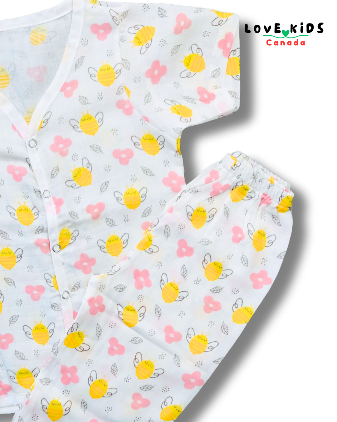 The half-sleeve top is gentle on skin and the breathable fabric ensures your baby stays comfortable all day long.