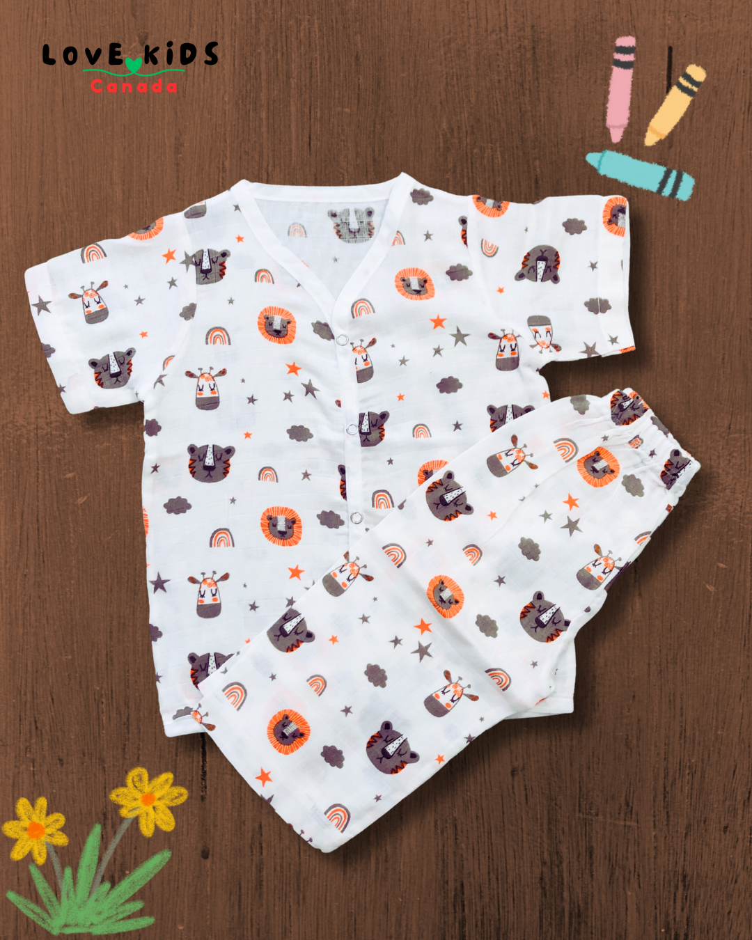 Half sleeve Co ord set - Lion & Tiger