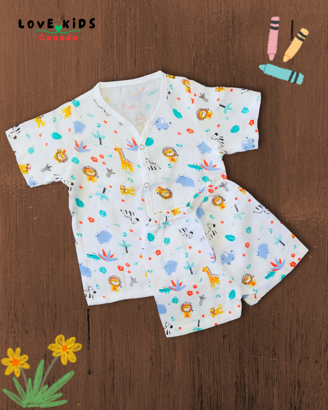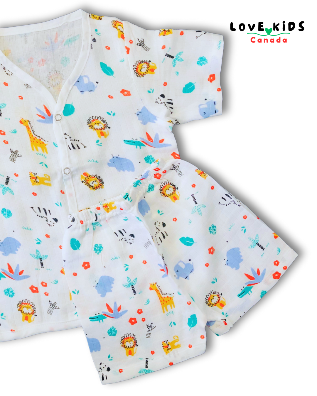 Half Sleeve & Shorts Co ord set - Lion & Giraffe