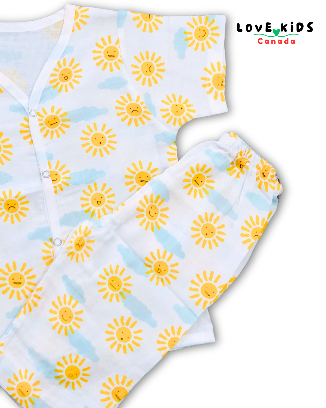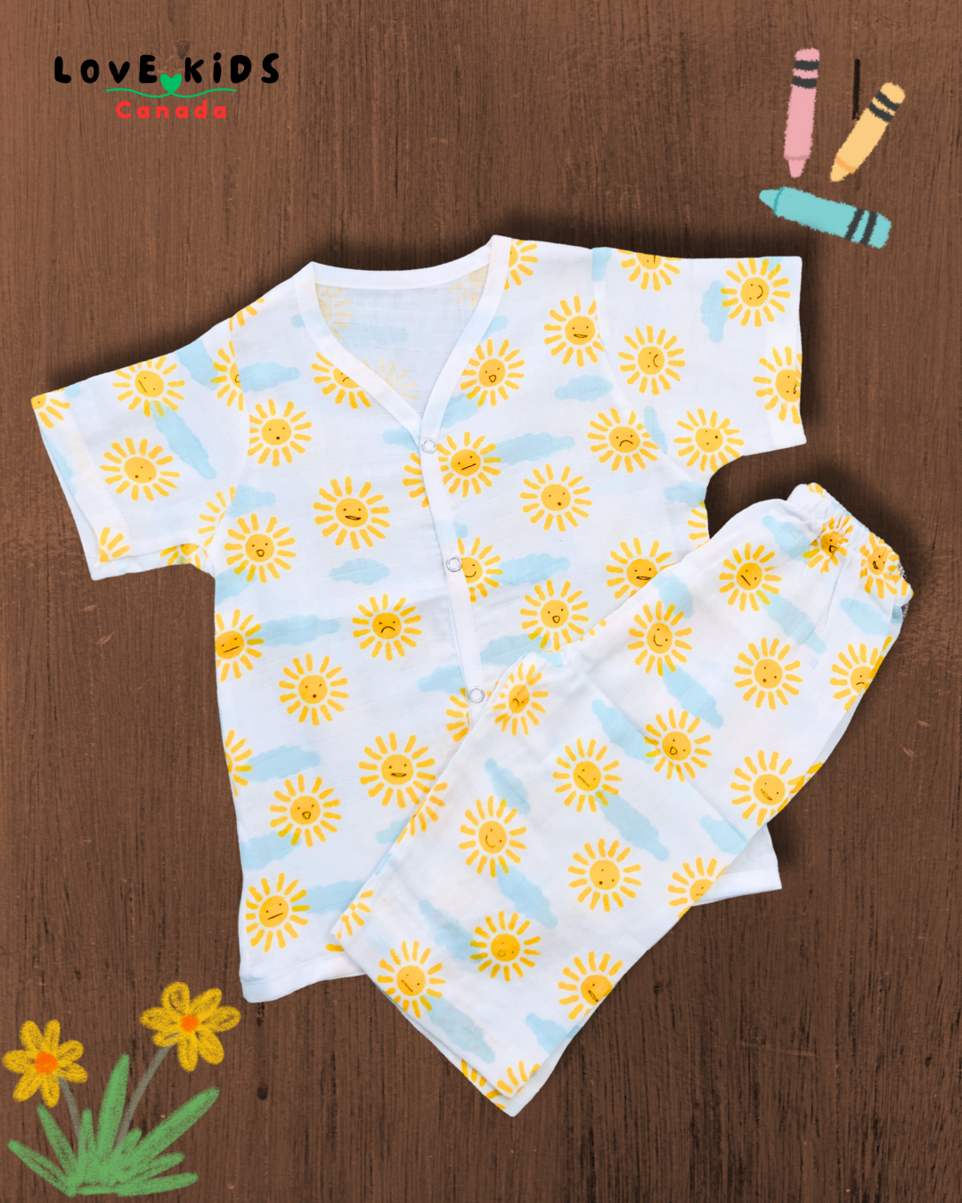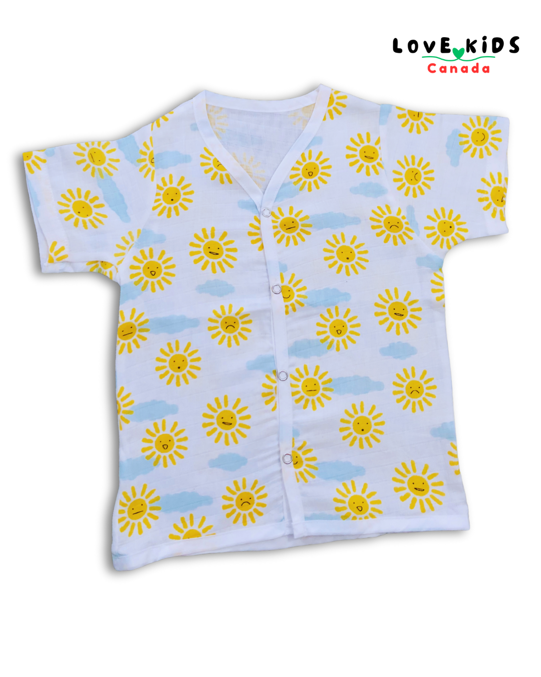 The half-sleeve top is gentle on skin and the breathable fabric ensures your baby stays comfortable all day long.