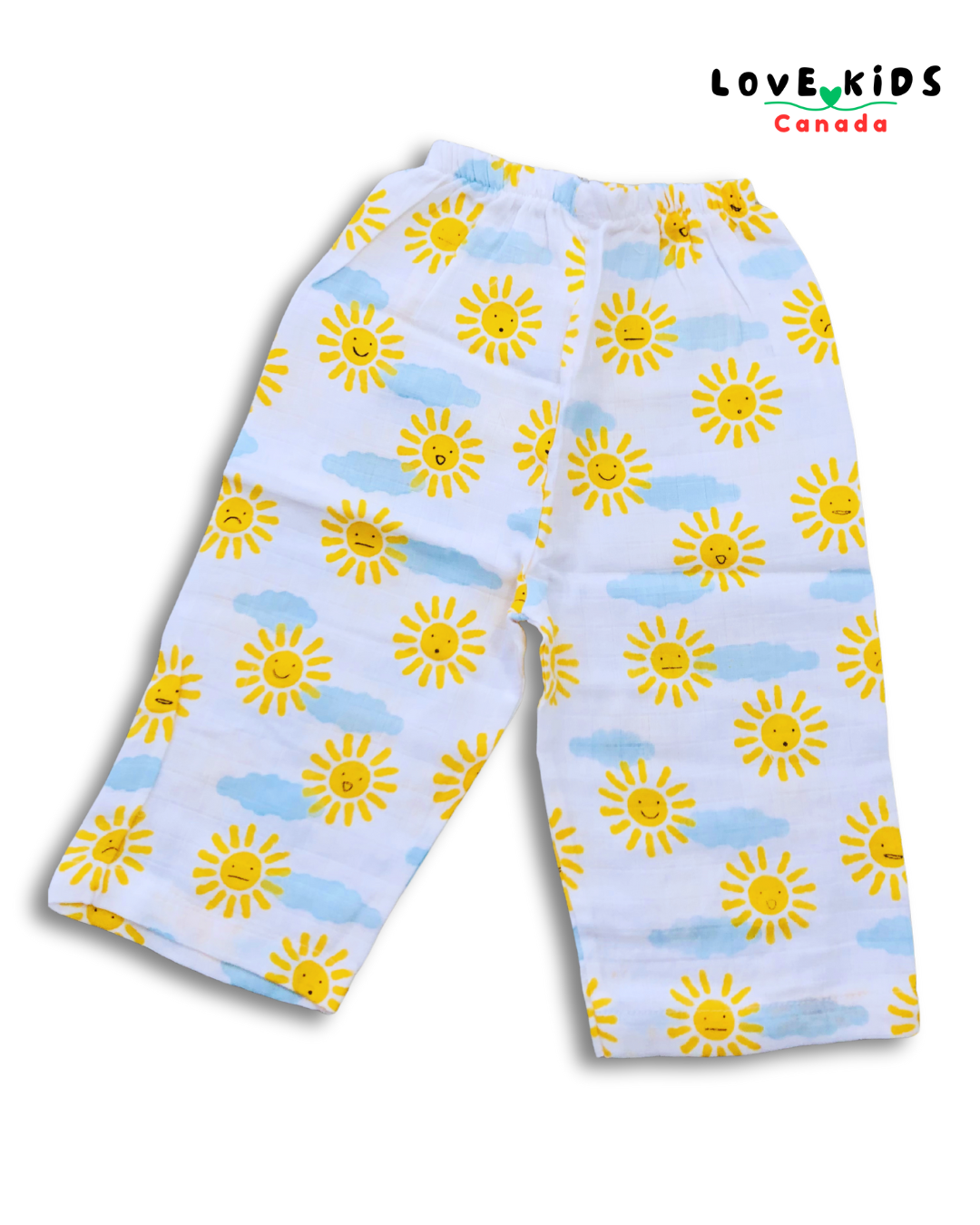 The matching pant offer a cozy fit with an elastic waistband for easy dressing and movement. Ideal for any season, this set is soft, hypoallergenic, and eco-friendly, making it a must-have for your little one's wardrobe.
