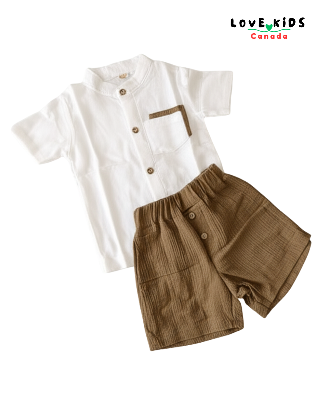 The matching shorts offer a cozy fit with an elastic waistband for easy dressing and movement. Ideal for any season, this set is soft, hypoallergenic, and eco-friendly, making it a must-have for your little one's wardrobe.